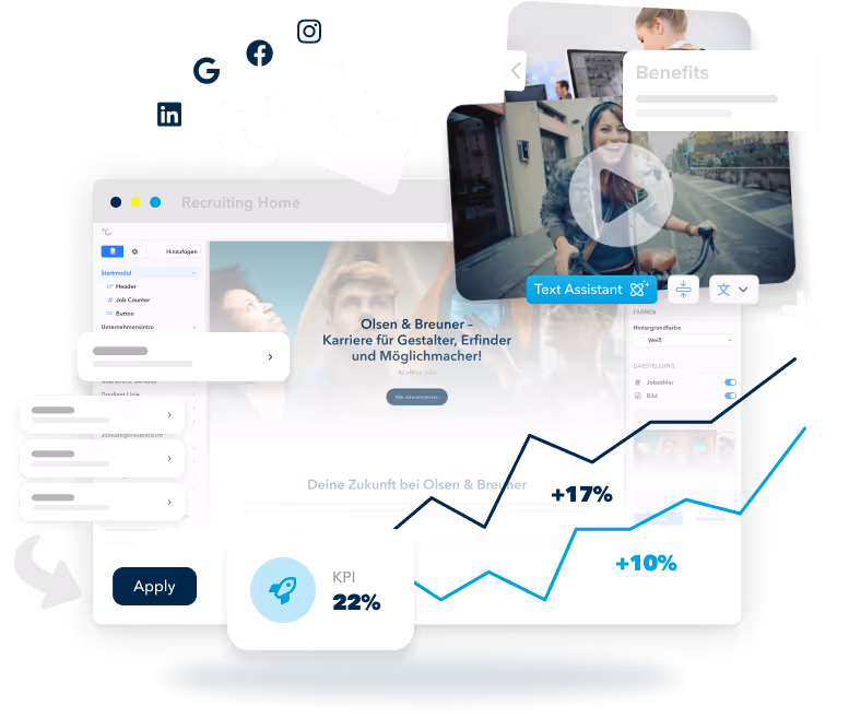 Mit dem JobShop gestaltest Du mühelos eine moderne Karriereseite für Dein Unternehmen, die Du eigenständig 24/7 in Echtzeit ohne Vorkenntnisse intuitiv bearbeiten kannst. Mit wirkungsvollen Jobangeboten überzeugst Du viermal mehr Kandidat:innen und erreichst Deine Recruiting-Ziele leichter, schneller und kostengünstiger. Durch die Nutzung der hochperformanten Karriereseiten-Lösung, kreierst Du für Deine Kandidat:innen die perfekte Candidate Journey und Experience. Der JobShop von talentsconnect liefert Dir: